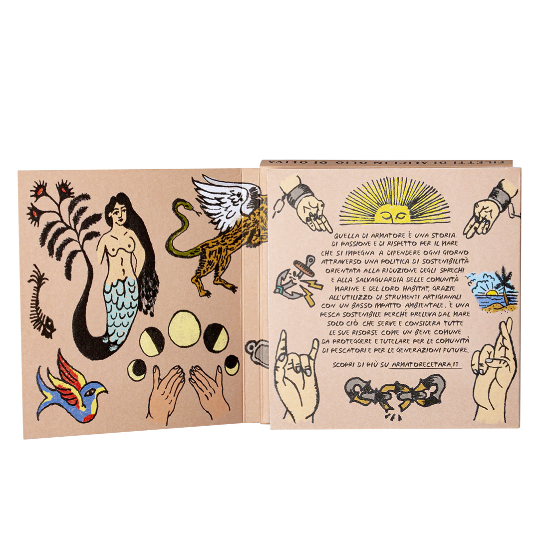 The illustrations on the packaging pay homage to the community of local fishermen and their tattoos. A nod to the people who make this wonderful company what it is.